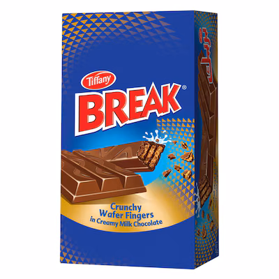 با شکلات ویفر کرانچی تیفانی بریک، لحظاتی شیرین و فراموشنشدنی را تجربه کنید. این ویفر ترد و خوشمزه، غرق در شکلات شیری خامهای، انتخابی بینظیر برای هر زمان و هر مکان است.
